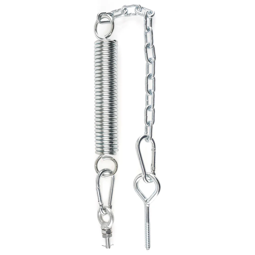 - If the weight of the swing is less than 200lbs (90kg), use the Torsion Spring provided. If the weight on the swing is over 200Ibs (90kg), assemble the swing hardware without the use of a spring. During 2-person usage, make sure to account for the portion of both parties when determining the weight (e.g. one partner may be on the floor, not hanging from the spring)