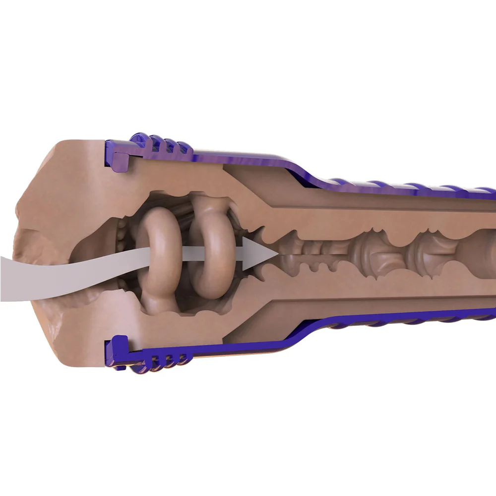 Inside the Bang unit is where the magic really happens! It has a hyper-realistic vulva entrance, with beautifully sculpted labia that you’ll love spreading and pushing yourself between. At its entrance, the Boost Masturbator contains two Turbo Tech floating rings that firmly greet you upon entry and ensure a perfectly snug grip all the way along your head and shaft with every thrust. The rest of the toy is lined with a highly textured, tight corridor consisting of ribbed rings and floating discs that have been expertly crafted to caress your erection to perfection! Fleshlight’s SuperSkin material clings to you and feels just like the real thing when paired with water-based lubricant — there’s even a sachet of FleshLube® water-based lubricant included in the box so you can jump into the fun straight away and focus on losing yourself in the pleasure!
