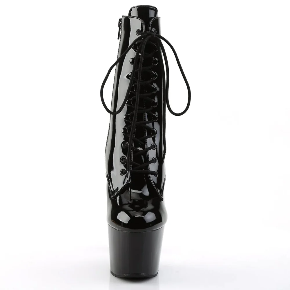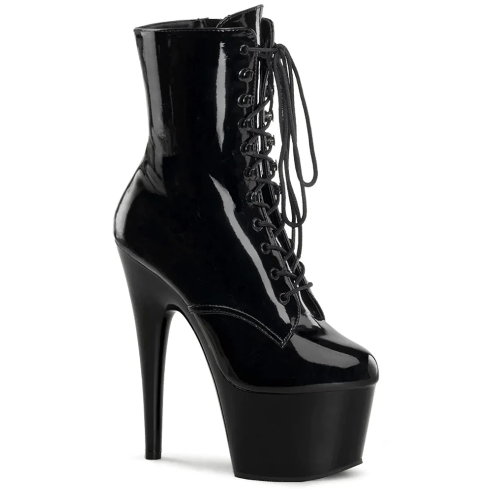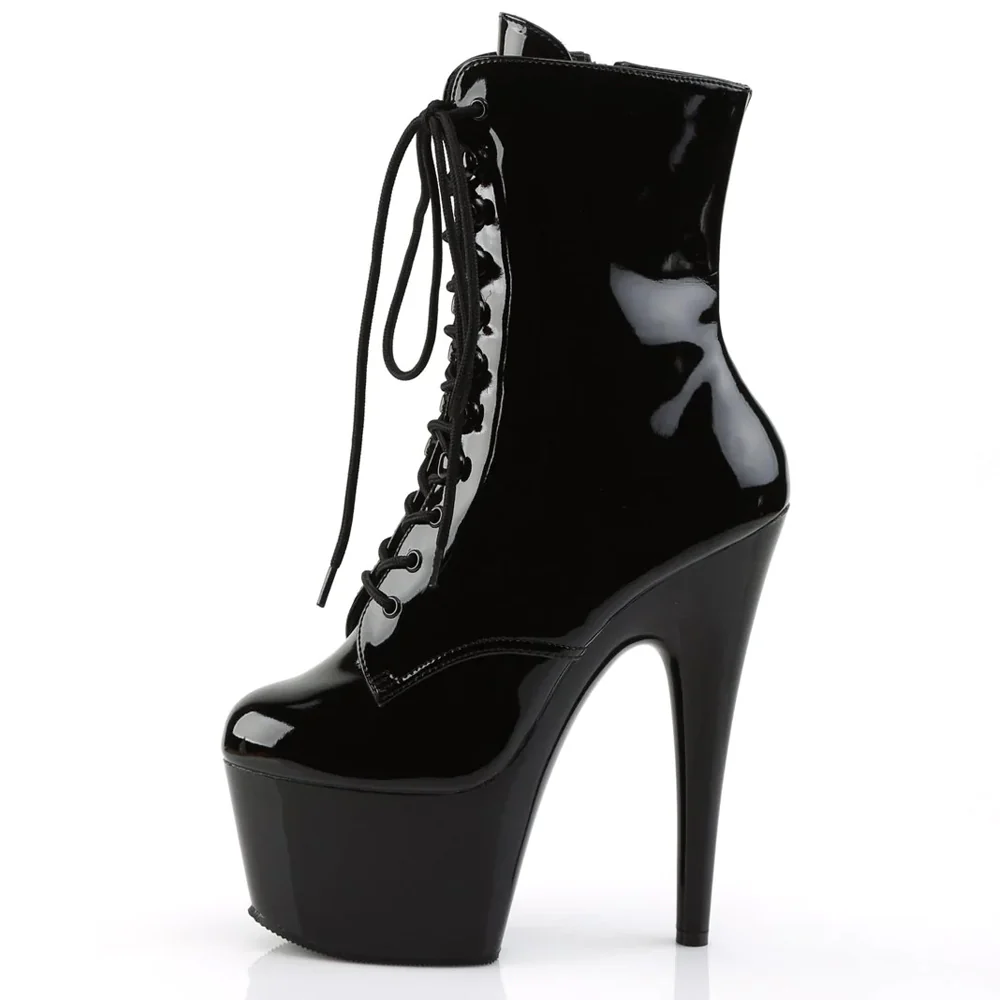Key features of the Pleaser Adore 7″ Stiletto Lace-Up Platform Ankle Boots – Patent Black:
