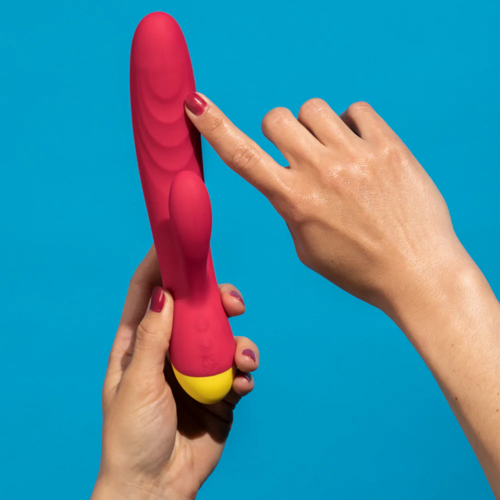 This sleek rabbit vibrator sports an ergonomic dual stimulation design with a soft G-spot tip that’s ribbed for extra sensation and super-flexible to keep up with your body’s movements during play. Meanwhile, the long, rounded clitoral arm hits your external sweet spot just right every time! With 6 steady vibration settings and 4 pattern modes, the Romp Jazz lets you decide for yourself how tightly you want to be clutching the sheets, whether you’re in the mood for gentle stimulation or a pillow-bitingly intense climax…