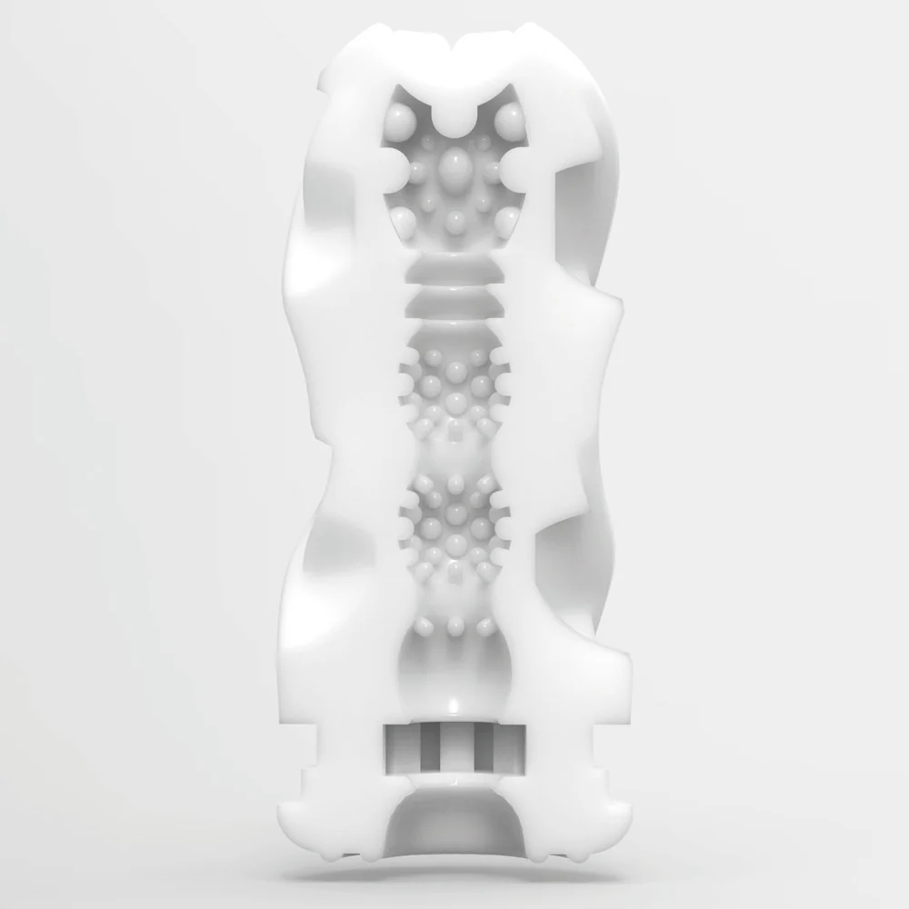 This reusable penis toy offers similar sensations to Tenga’s globally renowned flagship item, the Original Vacuum Cup, but with an all-new airflow structure for even more suction. The Air-Tech Series has a ribbed spiral design along the outside of the internal sleeve, which allows air to flow out of the case when it’s inserted and traps air in when you cover the air hole at the end of the toy. This results in a strong internal vacuum that offers awesome suction and stimulation, as well as creating cushioning air pockets all around you for a pleasurable surrounding pressure.